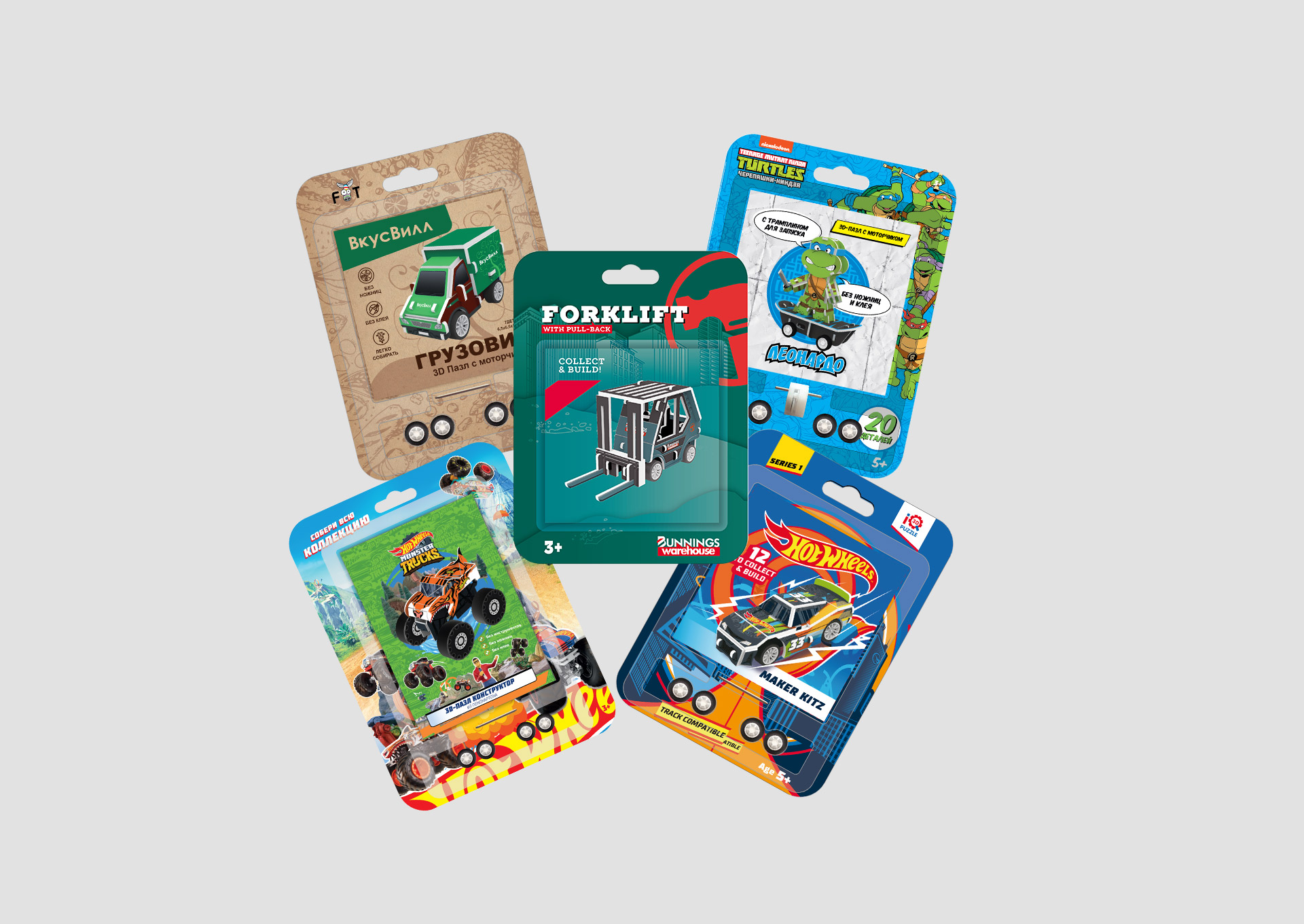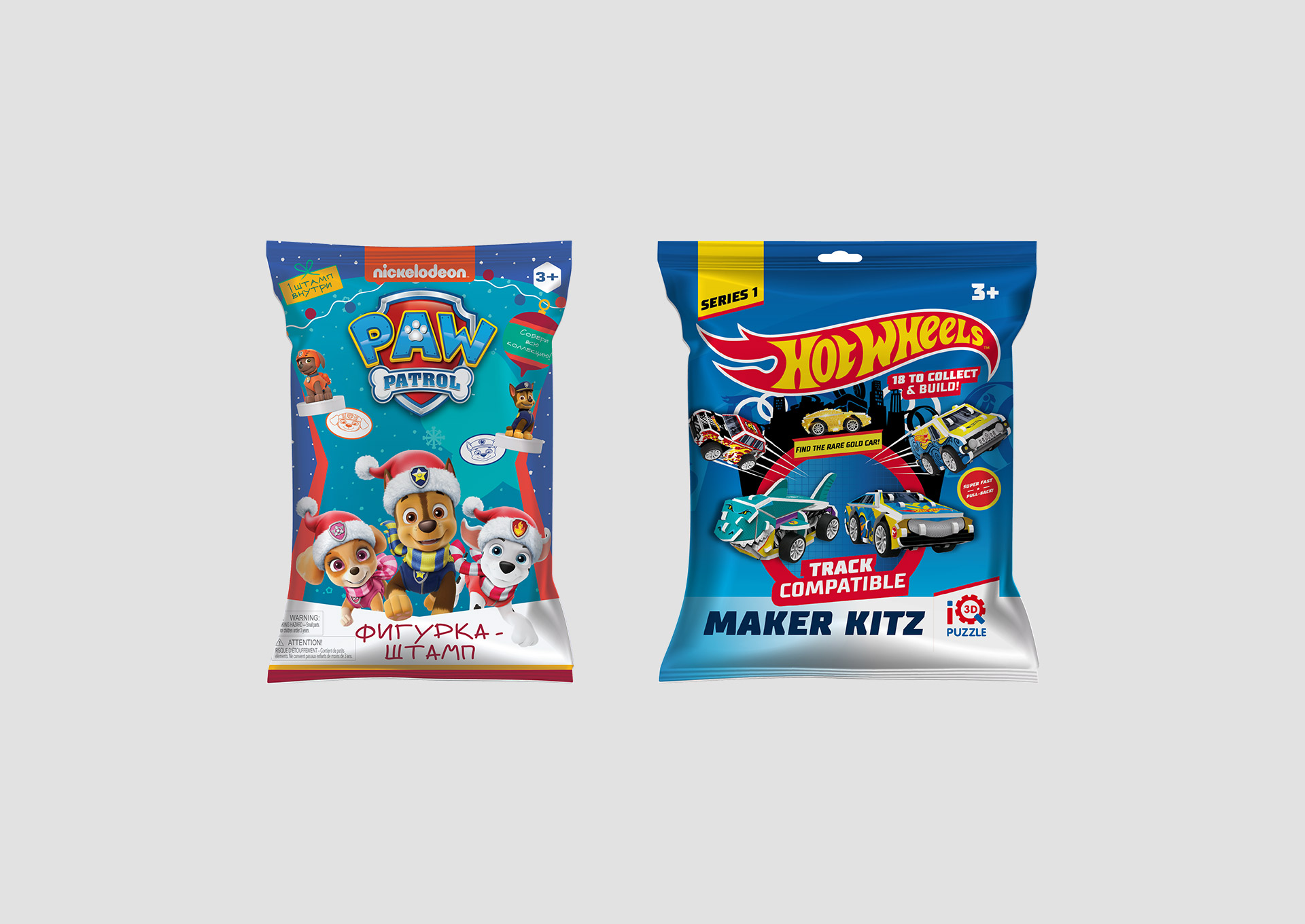 Packaging of licensed products Mattel, Nickelodeon, etc.